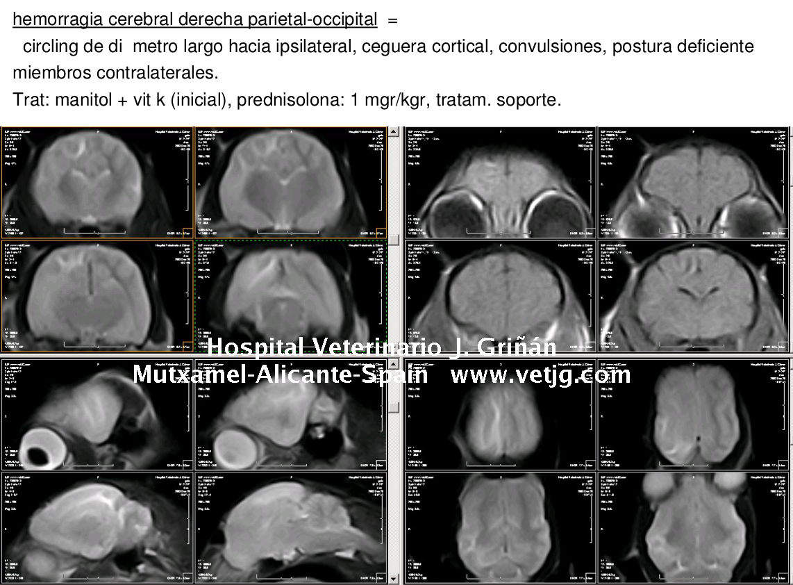 imágenes de resonancia magnética donde se demuestra la hemorragia cerebral. |