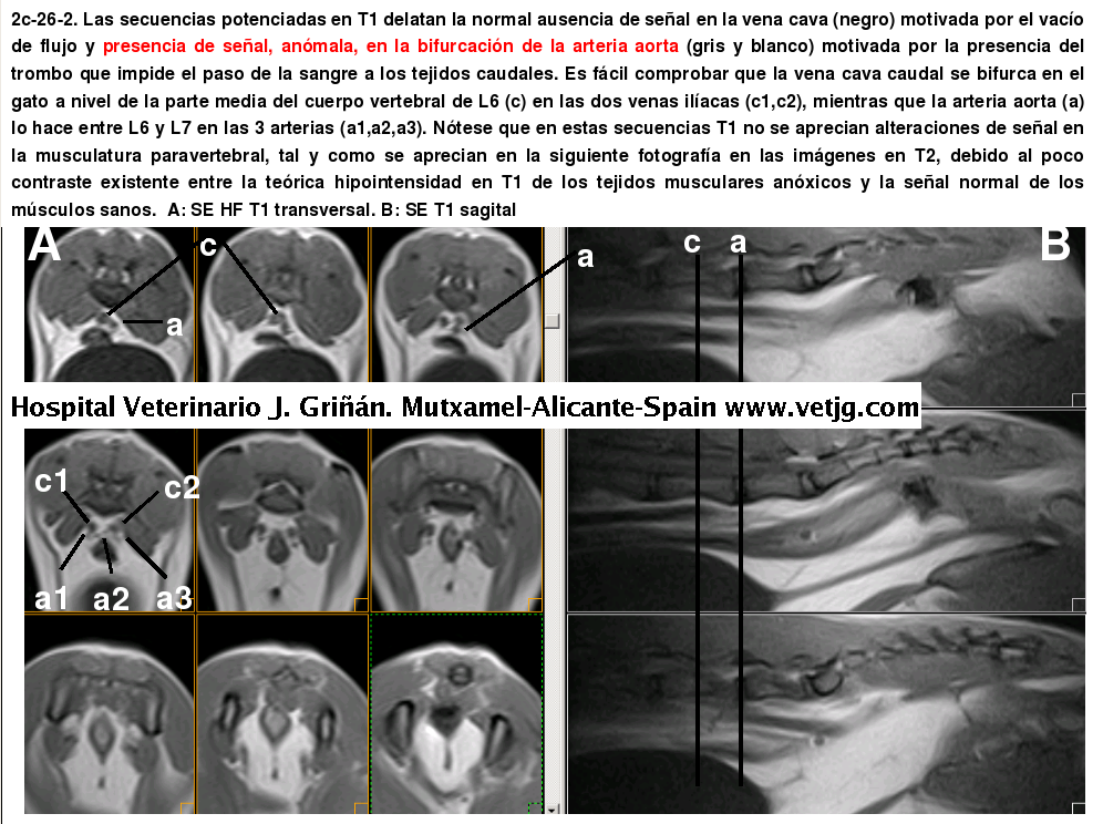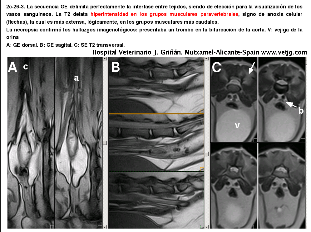 gato parapléjico por tromboembolismo aórtico. Se muestran sus imágenes de resonancia magnética. |