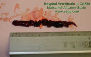 Detalle del trombo extraido: más de 10 cm de longitud. |
