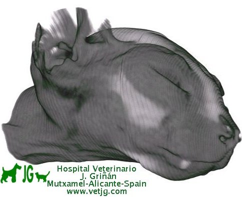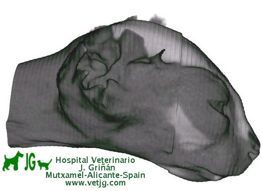 reconstrucciones del cráneo y de la cabeza de un gato a partir de las imágenes de TC |