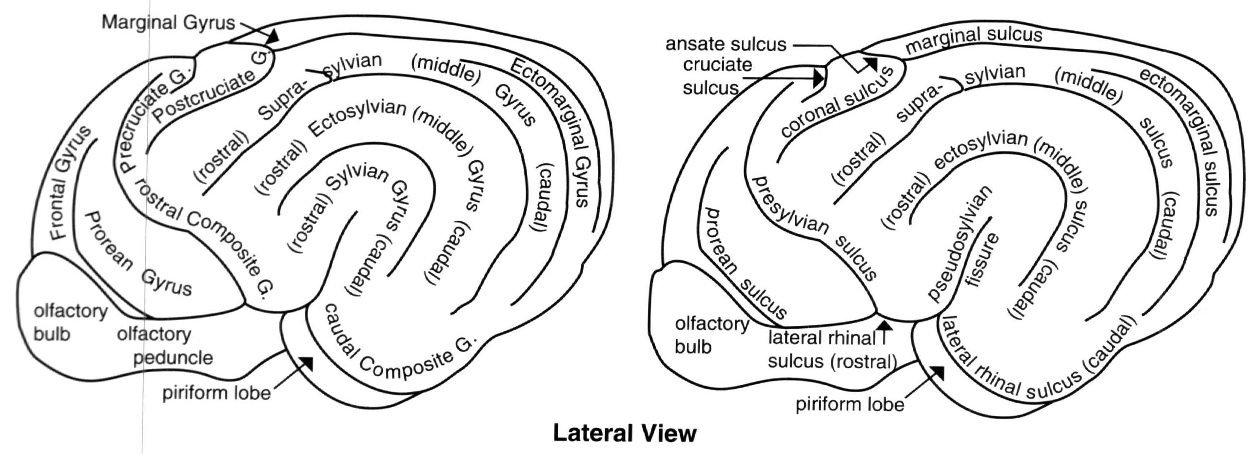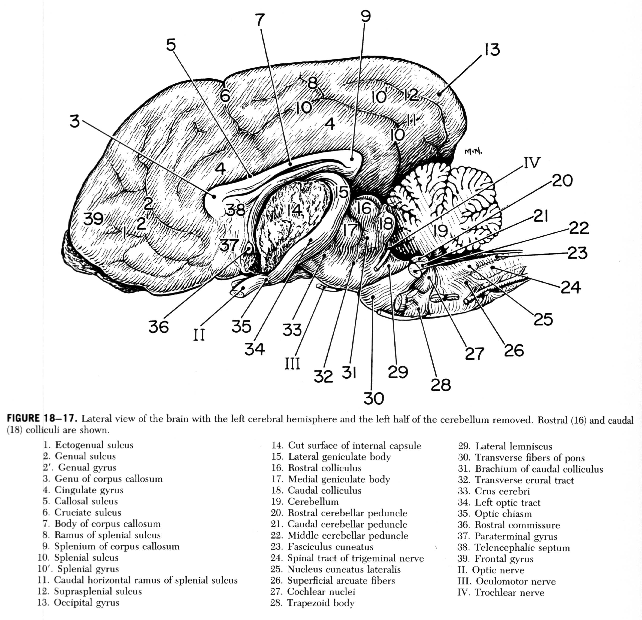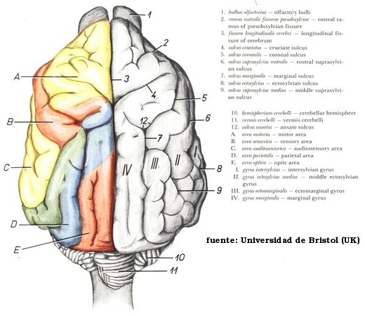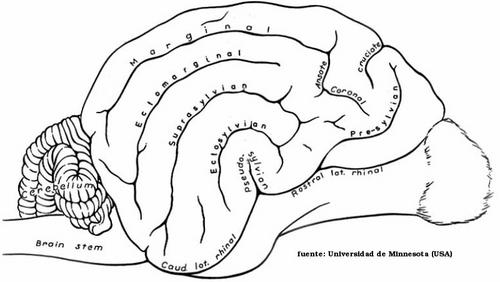 esquema del encéfalo y médula espinal por su cara lateral