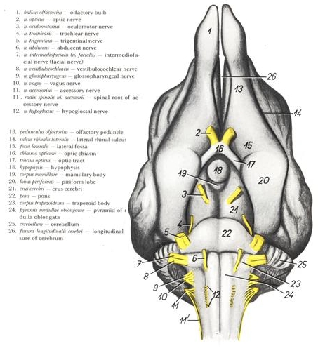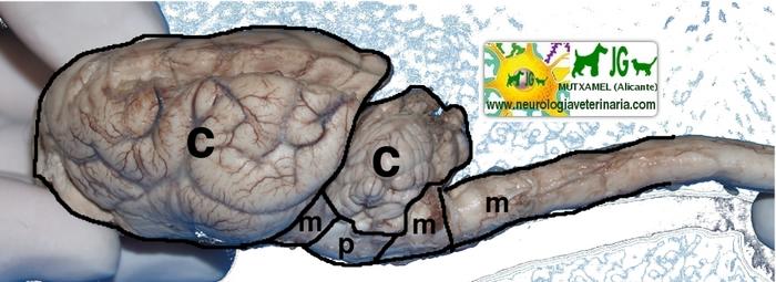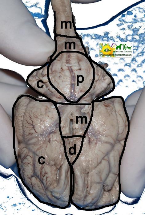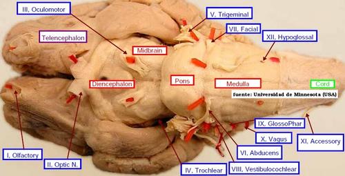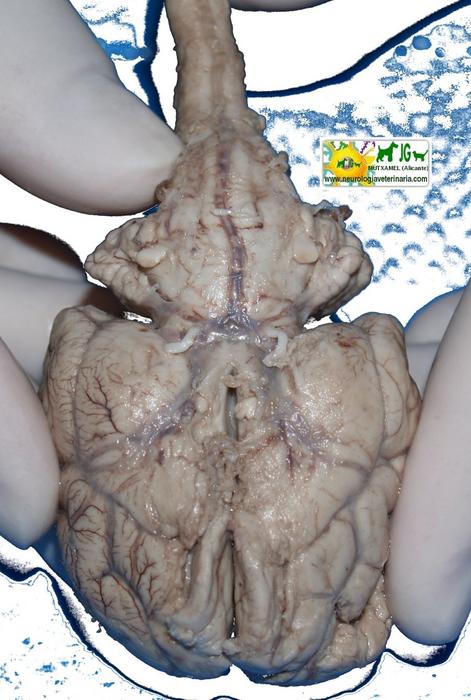 esquema del encéfalo y médula espinal por su cara ventral