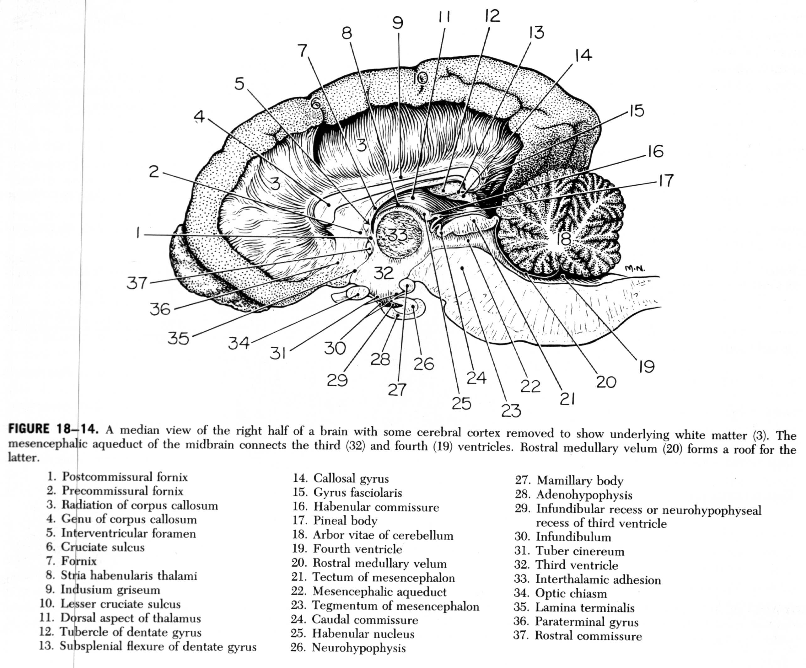 estructuras identificables en la vista medial (adherencia intertalámica)