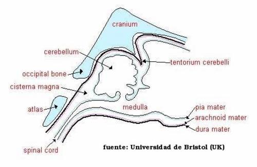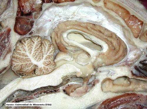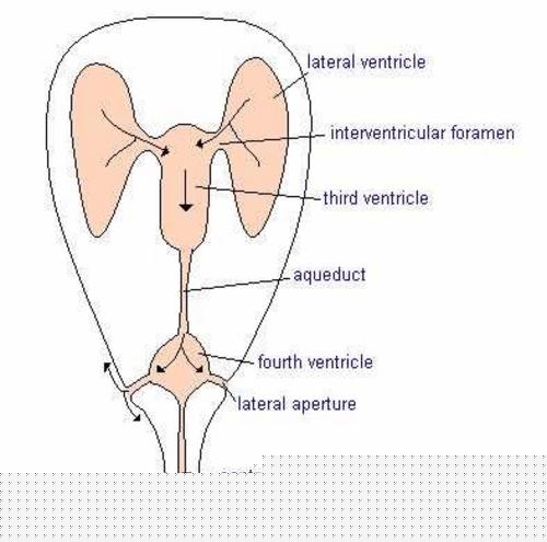 Este III ventrículo, se estrecha caudalmente cuando entra en el mesencéfalo o encéfalo medio, formando el acueducto de Silvio o acueducto mesencefálico que discurre por éste último, y que comunica a su vez con el IV ventrículo del rombencéfalo o encéfalo posterior, constituido por el puente y la médula oblongada. Este IV ventrículo tiene unas aperturas laterales y además se prolonga caudalmente por la médula espinal constituyendo el canal central de la médula espinal.