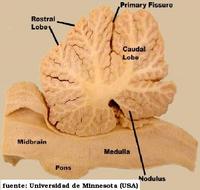 La mitad caudal de la médula oblongada se puede reconocer por la presencia de núcleos que tienen una determinada forma. El NUCLEO OLIVAR se localiza dorsal a la pirámide y proyecta al cerebelo fibras que juegan un importante rol en la coordinación del movimiento. Las fibras del hipogloso originadas del núcleo hipogloso, salen pasando lateralmente al núcleo olivar.