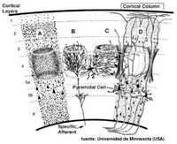 Toda la corteza cerebral está formada por unidades funcionales, cada una de ellas formada por una columna vertical de células (de unas 4 décimas de milímetro de diámetro) y que se extienden por todo el grosor de la corteza (por lo que incluyen las 6 capas celulares). Cada columna de células está activada por un particular tipo de estímulo.