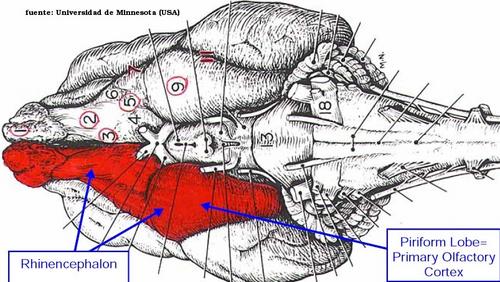 El RINENCÉFALO está formado por el lóbulo piriforme y por el bulbo olfatorio.