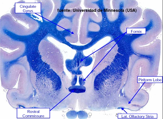 - FIBRAS COMISURALES: conectan las cortezas de los dos hemisferios cerebrales entre sí. El haz más grande forma el CUERPO CALLOSO.