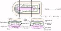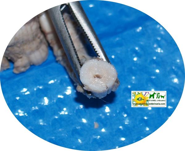 La DURAMADRE está separada del periostio de las vértebras por un espacio, llamado ESPACIO EPIDURAL, que está formado por tejido adiposo en estado líquido en el animal vivo, y en estado sólido en cadáveres. Entre la duramadre y el suelo del canal medular se encuentra el plexo venoso vertebral interno ventral, además del ligamento longitudinal dorsal.