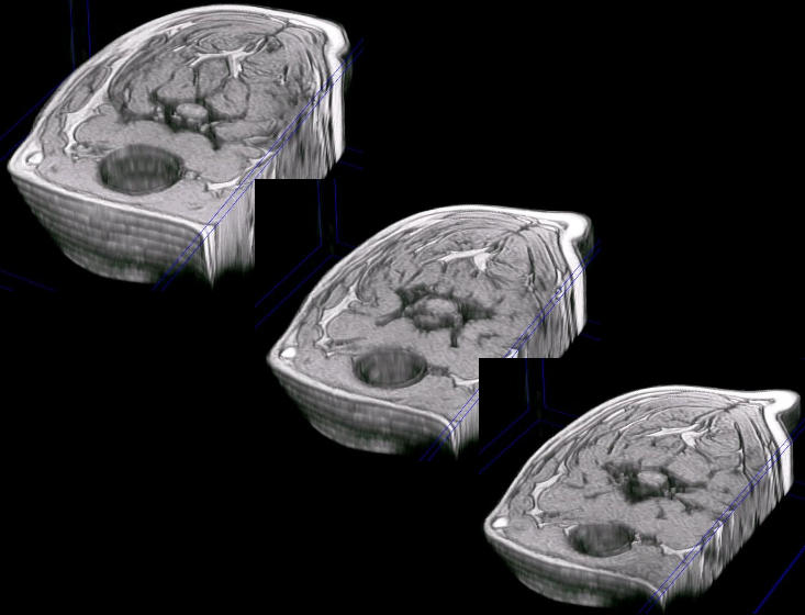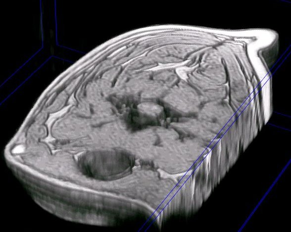 detalle de la columna vertebral cervical en una reconstrucción en 3D del cuello de un perro a partir de imágenes de resonancia magnética (secuencia GE) |