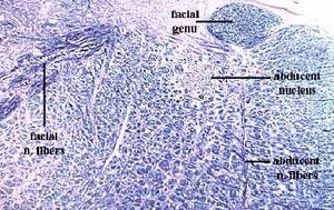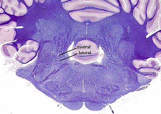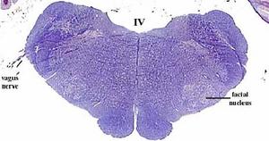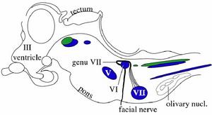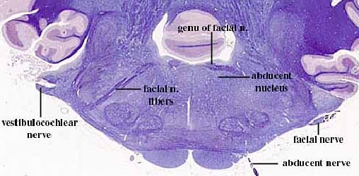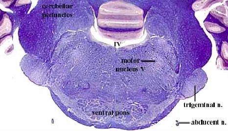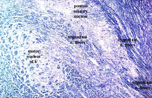 Núcleo pontino del V o núcleo sensorio principal, localizado en el puente, y está asociado con sensación de la presión y tacto de la cara y cavidad oral.
