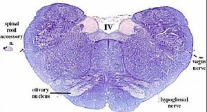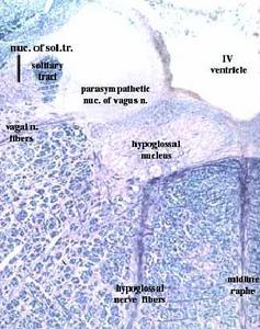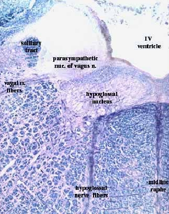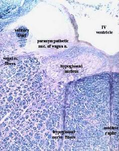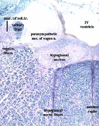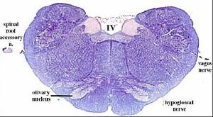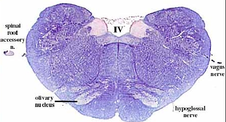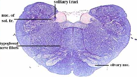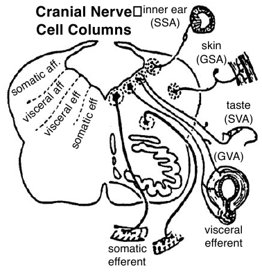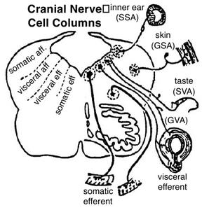 Aferentes viscerales generales (GVA): localizados laterales a la columna GVE y compuesto por un único núcleo denominado núcleo solitario o núcleo del tracto solitario, el cual está asociado con IX y X, recibiendo la sensación visceral de la faringe, laringe y porciones del esófago.