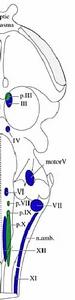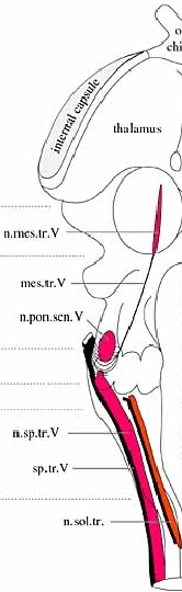 Núcleo mesencefálico del V: localizado en el cerebro medio y el cual recibe información de la propiocepción de la cara.