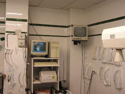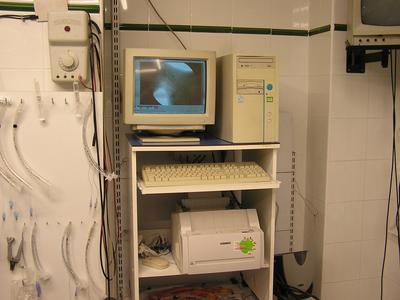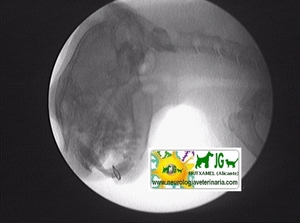 La radioscopia con intensificación y captura digital de imágenes ayuda en numerosas exploraciones neurodiagnósticas. Es la gran desconocida en medicina veterinaria, por su fama de cara (es más económica que un buen microscopio), es la “prohibida” del gremio (por desconocimiento de que no tiene nada que ver con las fluoroscopias que nos han hecho en el médico de pequeños), etc.. Gracias a ella capturamos foto-radiografías y vídeo-radiografías para su archivo en el historial médico del paciente. Debido a la baja potencia del aparato de rayos X necesaria, la irradiación es mínima, correspondiendo un minuto de exposición a la radiación emitida realizando 10 radiografías de forma convencional (y nunca se emplea un minuto en cada exploración). Como técnicas más utilizadas en nuestro hospital destacan: - realización de mielografías o discografías, en la cual estamos viendo la entrada de la aguja y la salida del contraste en el espacio subaracnoideo o en el disco. - mielografía dinámica: modificamos el plano scópico a nuestra conveniencia, observando, y grabando, la región anatómica que nos interese. - detección rápida de metales a animales a los que se les va a realizar una resonancia magnética. - estudio dinámico de las inestabilidades vertebrales. - diagnóstico de subluxaciones articulares (muchas veces imposibles de detectar con radiografía convencional): mandibulares, atlantoaxiales, miembros torácicos o pelvianos, etc.. - arteriografías cardíacas y periféricas. - portografías mesentéricas. - uretro-prostato-cistografías retrógadas. Y un largo etcétera. Como añadido tiene la posibilidad de obtención de archivos fotográficos JPG o videos AVI, los cuales se pueden luego transformar en otros formatos, y que se estudian con un editor de fotografías y vídeos, se envían por email, y numerosos procesamientos informáticos a nuestra conveniencia. Desarrollaré en breve : RADIOSCOPIA DEL CRÁNEO RADIOSCOPIA DE LA COLUMNA |