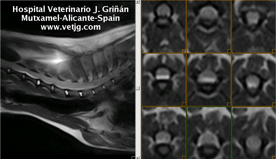 Caso 2: imágenes de resonancia magnética de un perro con síndrome cervical motivado por una hernia discal a nivel de C3-C4