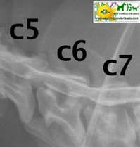 mielografía de un perro mestizo de pastor alemán con síndrome cervicotorácico motivado por enfermedad discal en c5-c6 y c6-c7. |