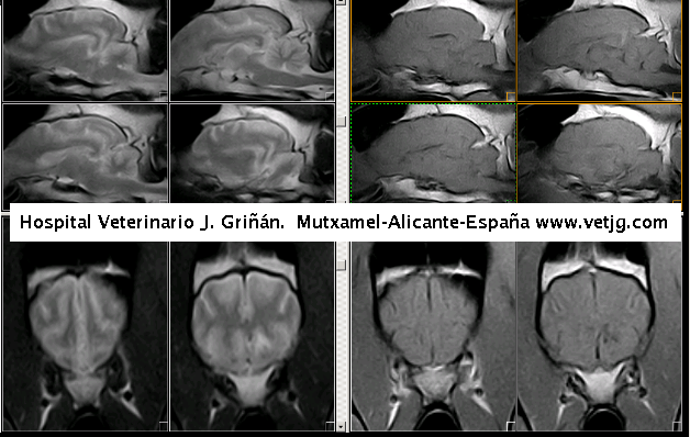imágenes de resonancia de una hemorragia cerebral en un chow-chow |