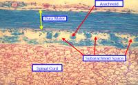 Las meninges con capas de tejido conectivo que rodean al encéfalo, a la médula y a las raíces nerviosas de los nervios espinales. |
