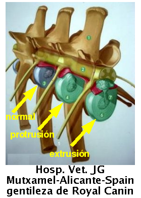 condroide de les razas condrodistróficas. Si el prolapso es agudo se acompaña de hemorragia epidural.