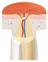 El líquido cefalorraquídeo, presente en el espacio subaracnoideo, nos permite visualizar, gracias al contraste que contiene, el aparato ventricular (VL: ventrículo lateral) además de los surcos cerebrales y cerebelares (c).