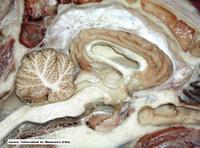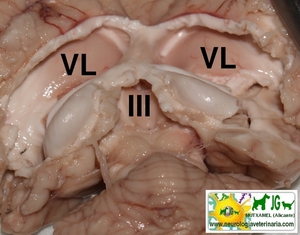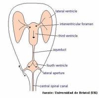 En el desarrollo embriológico se perfila la formación de las cavidades internas o ventrículos encefálicos por los que se formará y circulará el LCR. Así, el prosencéfalo dará origen a una vesícula central (diencéfalo) y dos vesículas laterales ( vesículas telencéfalicas). En el interior del diencéfalo está la cavidad o ventrículo diencefálico (llamado III ventrículo), el cual comunica con los ventrículos laterales (también llamados I y II ventrículos) de las dos vesículas telencéfalicas a través de los agujeros interventriculares o de Monro.