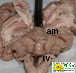 Este III ventrículo, se estrecha caudalmente cuando entra en el mesencéfalo o encéfalo medio, formando el acueducto de Silvio o acueducto mesencefálico que discurre por éste último, y que comunica a su vez con el IV ventrículo del rombencéfalo o encéfalo posterior, constituido por el puente y la médula oblongada. Este IV ventrículo tiene unas aperturas laterales y además se prolonga caudalmente por la médula espinal constituyendo el canal central de la médula espinal.