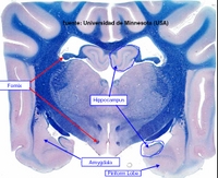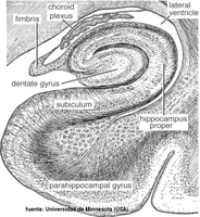 HIPOCAMPO: Es una estructura de la corteza cerebral con 3 capas de células, llamada ARQUEOCORTEX, de importancia en aprendizaje asociativo y memoria (particularmente memoria de corto tiempo). Tanto pacientes amnésicos como animales con daños en hipocampo exhiben problemas tiempo-dependientes en tareas de comportamiento generalmente descritas como asociativas o relacionadas por naturaleza. Este área del cerebro tiene un bajo umbral de ataques o convulsiones.