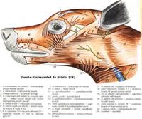 Nervio VII (facial): inerva los músculos de la expresión facial: auriculares, palpebrales, nasales y labiales, además del músculo estapedio y la parte caudal del músculo digástrico.