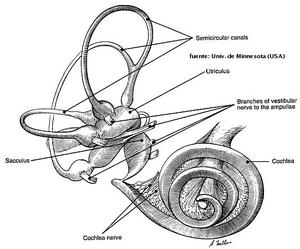 Nervio VIII (vestibulococlear): responsable de la aceleración de la cabeza. Recoge sensaciones a través de los cuerpos celulares bipolares sitos en el ganglio vestibular, asociado al aparato vestibular. |