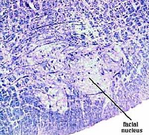 Núcleo pontino del V o núcleo sensorio principal, localizado en el puente, y está asociado con sensación de la presión y tacto de la cara y cavidad oral.