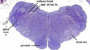 Aferentes viscerales generales (GVA): localizados laterales a la columna GVE y compuesto por un único núcleo denominado núcleo solitario o núcleo del tracto solitario, el cual está asociado con IX y X, recibiendo la sensación visceral de la faringe, laringe y porciones del esófago.